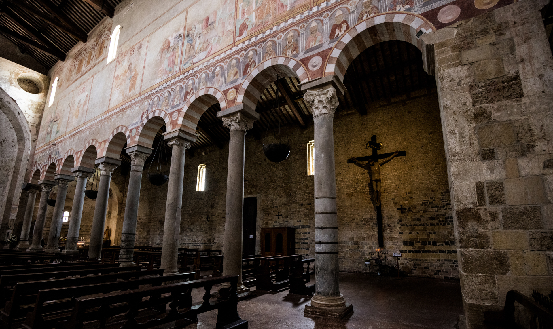 Attestazione del primo luogo di culto in questa zona risale al IV secolo d.C. Secondo la leggenda, nell’anno 44 d.C. qui sbarcò San Pietro, approdato durante una terribile tempesta nei pressi di Pisa, a Gradus Arnensis, dove decide di erigere un altare in pietra, il primo in Italia. La costruzione attuale fu edificata tra il X e il XII secolo, trattasi di un edificio molto complesso che ha subito numerose trasformazioni. L’esterno, prevalentemente in panchina livornese e decorato con archetti ciechi e 64 bacini creamici (gli originali conservati al Museo di san Matteo), presenta alcuni elementi tipici del romanico pisano. Il campanile fu fatto saltare durante la seconda guerra mondiale, dopo la guerra ne venne intrapresa la ricostruzione ma i finanziamenti non furono sufficienti per terminare i lavori. Elemento insolito nel territorio pisano è l’assenza di una facciata, distrutta nel XII secolo, al suo posto si trova un’abside, che si contrappone alle tre absidi a sud-est. All’interno la basilica è a tre navate, scandite da due file di 12 colonne. Restano tracce di affreschi dell’ XI e XII secolo. La navata centrale è decorata da un ciclo di affreschi, le Storie di San Pietro, dipinte da Deodato Orlandi nei primi anni del Trecento. Sotto il ciborio tardogotico, si erge la colonna di San Pietro, sulla quale l’Apostolo pose una grande pietra per celebrare la messa. Attorno ad essa i resti della prima chiesa paleocristiana del V secolo ad una sola abside e della chiesa dell’ VIII secolo triabsidata.