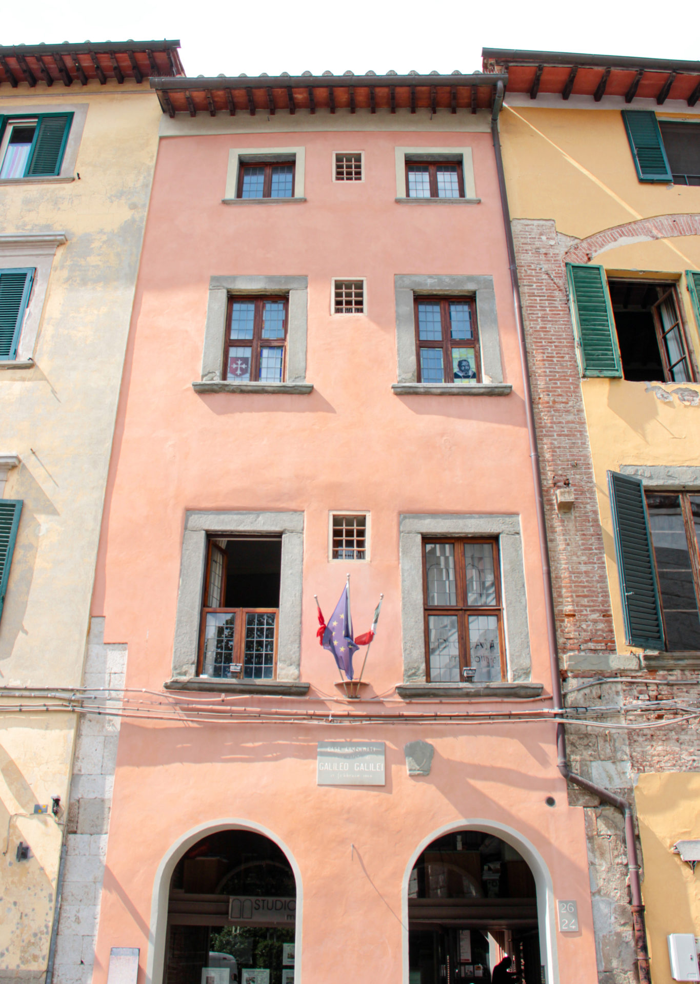 In città di Pisa, Nacqui qui, primo di 7 figli in questa casa di famiglia di mia madre Ammannati Giulia presso la chiesa di S.Andrea foris portam (ai numeri civici 24 e 26 dell’odierna Via Giusti) il di 15 di febbraio 1564.