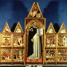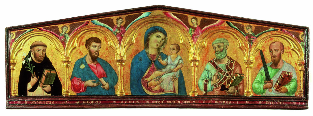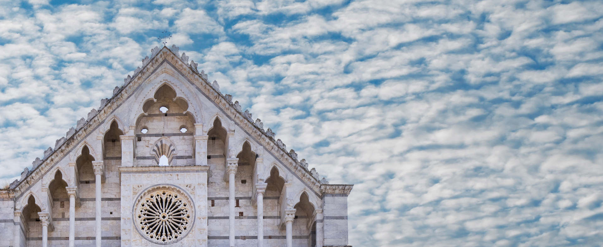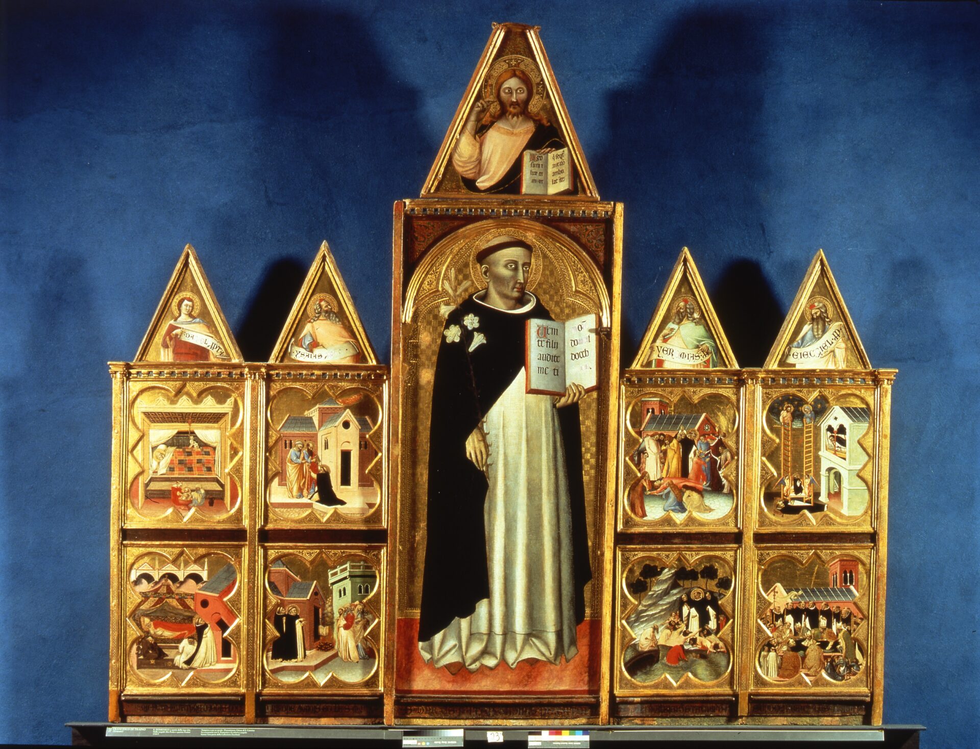La chiesa fu costruita agli inizi del XIII secolo, con la concessione ai Dominicani (1222) venne realizzata la struttura attualmente visibile e il convento annesso. La struttura a capanna con aula unica risponde all’esigenza di avere un ampio spazio dedicato alla predicazione. La navata unica coperta da capriate si incrocia con un transetto “a T” sul quale si affacciano quattro cappelle voltate con archi a crociera. La facciata, terminata nella prima metà del XIV secolo, è decorata con marmi bianchi di S. Giuliano scanditi su fasce bicrome che sviluppano il tema decorativo della Cattedrale in chiave gotica. Altorilievi con busti di santi incorniciano il rosone centrale. Il campanile in cotto è attribuito a Giovanni di Simone, autore anche di quello di S. Francesco e del Camposanto Monumentale.
