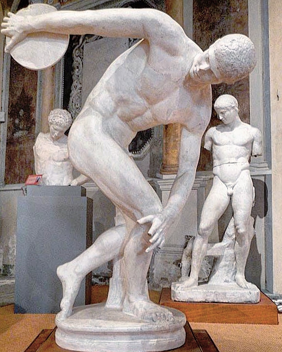 Qual è il nome di questa statua? Istintivamente risponderemmo «il Discobolo di Mirone», ma in realtà nessuno conosce il vero aspetto dell’opera scolpita dal celebre scultore greco nel V secolo a.C., che è andata perduta. Sono arrivate fino a noi solamente alcune sue repliche realizzate molti secoli più tardi in età romana, ma non sono uguali tra loro. Il Discobolo esposto in Gipsoteca è un esperimento, realizzato dall’archeologo Emanuele Rizzo assemblando i calchi di repliche diverse, per ricreare la versione che secondo lui si avvicinasse maggiormente all’originale.