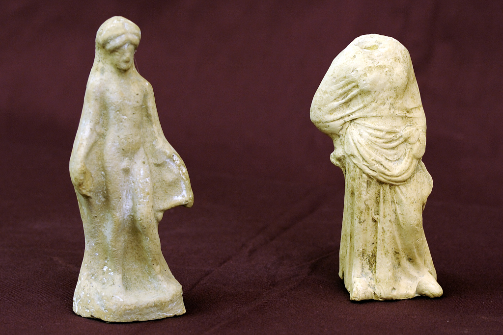 Perché queste statue sono così piccole? Queste statuette sono offerte votive, dedicate in un santuario da donne e uomini etruschi alla loro divinità protettrice, tra il IV e il III secolo a.C. Oltre alle statuette, che rappresentavano la divinità (per esempio Apollo, nella foto a sinistra) o l’offerente stesso, si potevano offrire altri piccoli manufatti in ceramica, come pesi da telaio, vasetti o riproduzioni di animali e parti anatomiche: tutto dipendeva da quel che si voleva chiedere agli dèi.