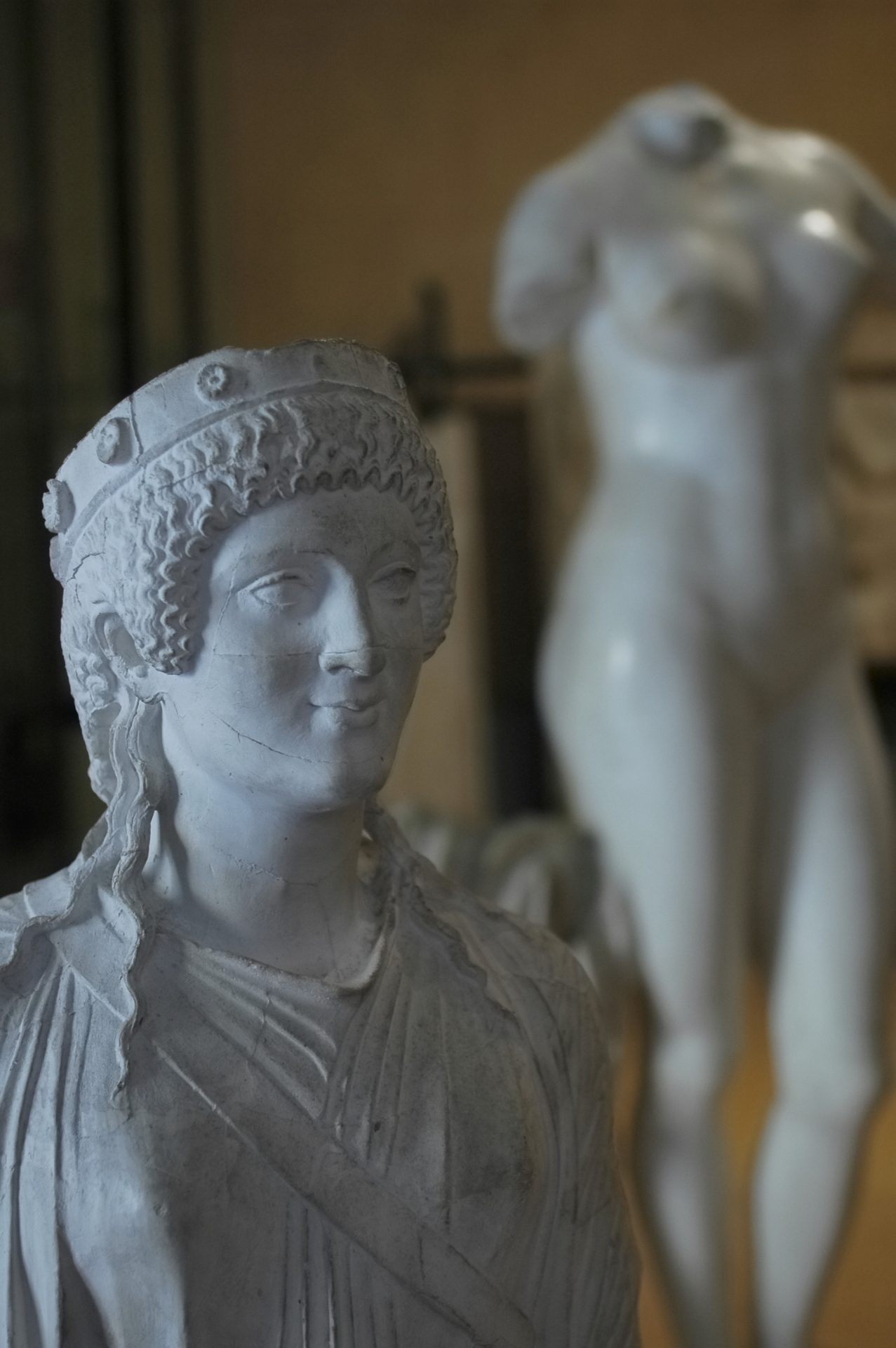 Qual è il nome di questa statua? Istintivamente risponderemmo «il Discobolo di Mirone», ma in realtà nessuno conosce il vero aspetto dell’opera scolpita dal celebre scultore greco nel V secolo a.C., che è andata perduta. Sono arrivate fino a noi solamente alcune sue repliche realizzate molti secoli più tardi in età romana, ma non sono uguali tra loro. Il Discobolo esposto in Gipsoteca è un esperimento, realizzato dall’archeologo Emanuele Rizzo assemblando i calchi di repliche diverse, per ricreare la versione che secondo lui si avvicinasse maggiormente all’originale.