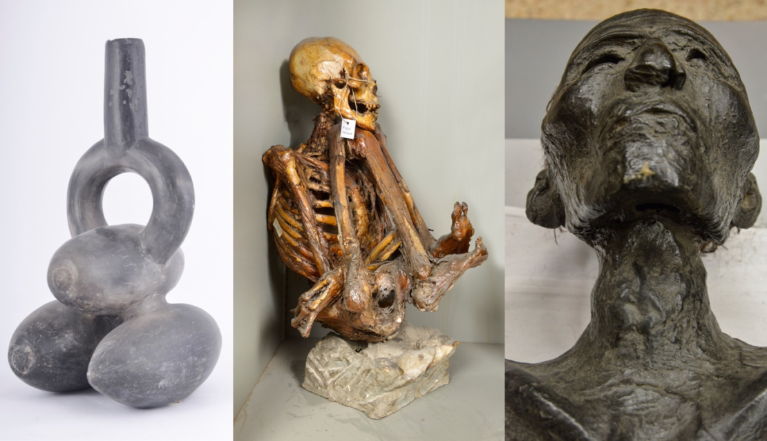 Il Museo vanta una collezione molto ampia di preparati in alcool o essiccati. Parliamo di corpi, normali o patologici, conservati come testimonianza storica. Oltre ai reperti citati sono presenti anche mummie e corredi funerari precolombiani ed egizi. Nella foto vediamo parte della collezione proveniente dal sud America e la mummia egizia.
