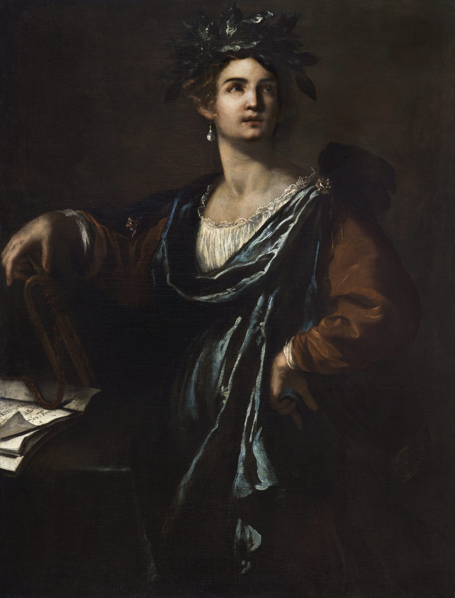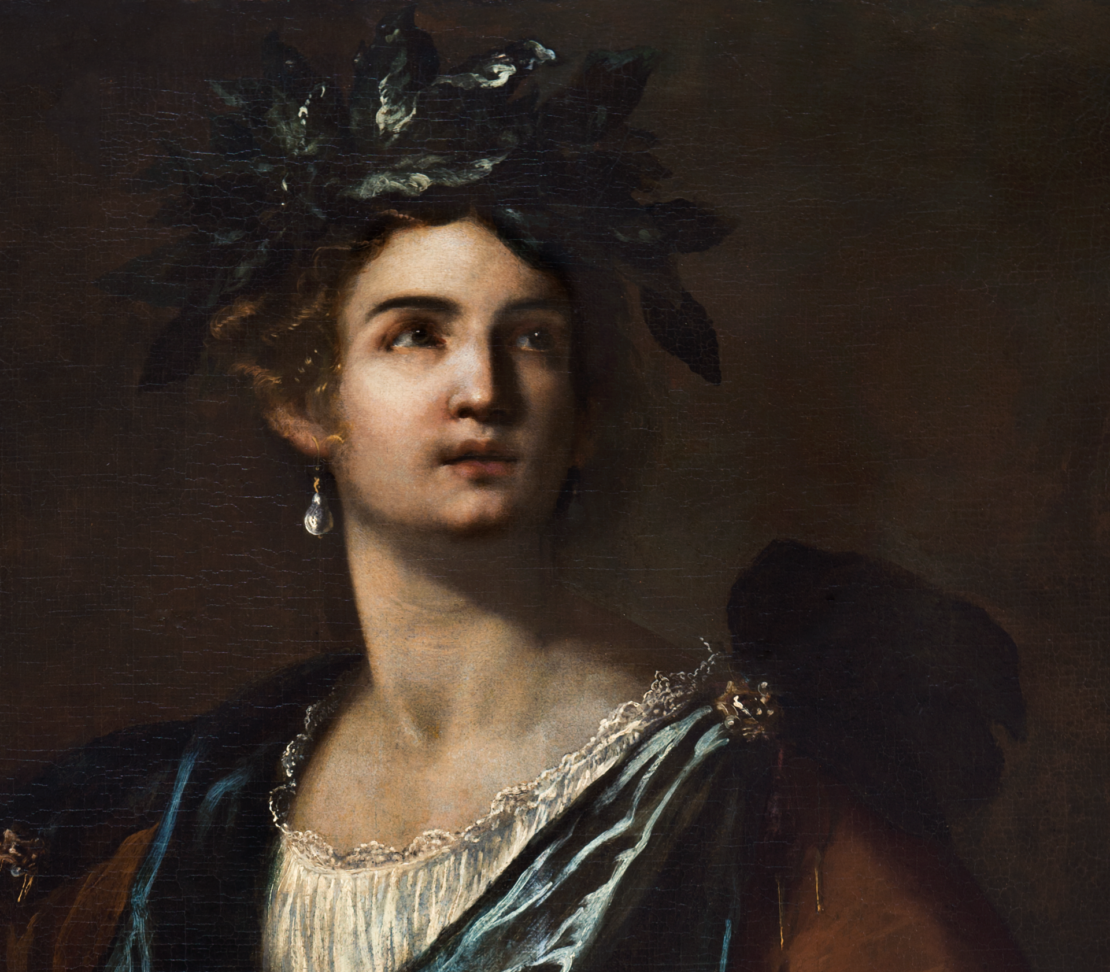 Dipinto dalla grande pittrice romana e figlia di Orazio Gentileschi, artista seicentesco molto noto e attivo a Pisa e nelle aree limitrofe. Clio è la Musa della Storia, colei che custodisce il passato, ispirando i versi dei poeti.