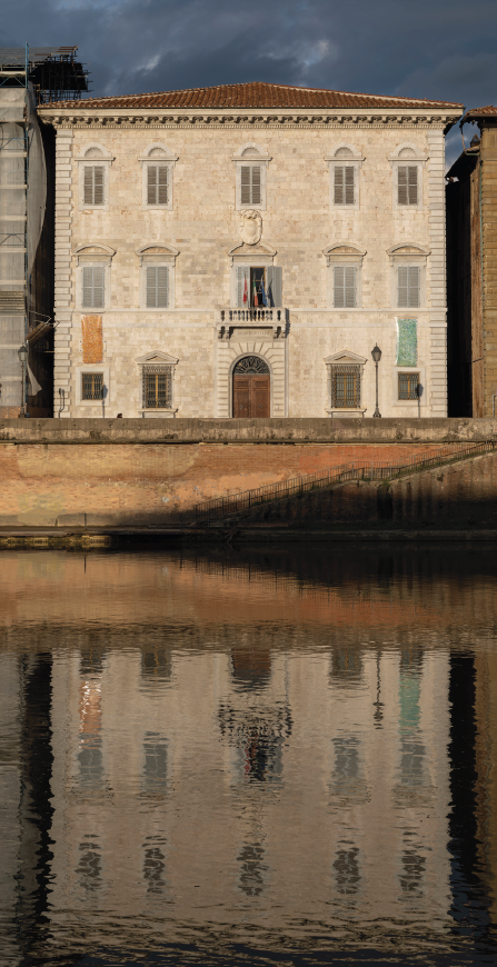 La lunga storia dell’edificio, dal 1913 sede dell’Archivio di Stato di Pisa, inizia nel 1505 quando Bartolomeo Lanfranchi, mercante pisano operante nel Tirreno e attivo particolarmente a Palermo, rientrando definitivamente in patria acquistò una domus di cinque piani con loggia, pozzo e varie pertinenze posta sul Lungarno, nella cappella di Sant’Andrea in Foriporta L’ubicazione sul fiume, dove dall’accorpamento di case e torri medievali andavano sorgendo le dimore delle principali famiglie cittadine, conferiva all’abitazione un particolare pregio esibendo il prestigio economico e sociale del proprietario, membro di una casata di antica aristocrazia che aveva rinverdito le sue fortune lontano da Pisa.
